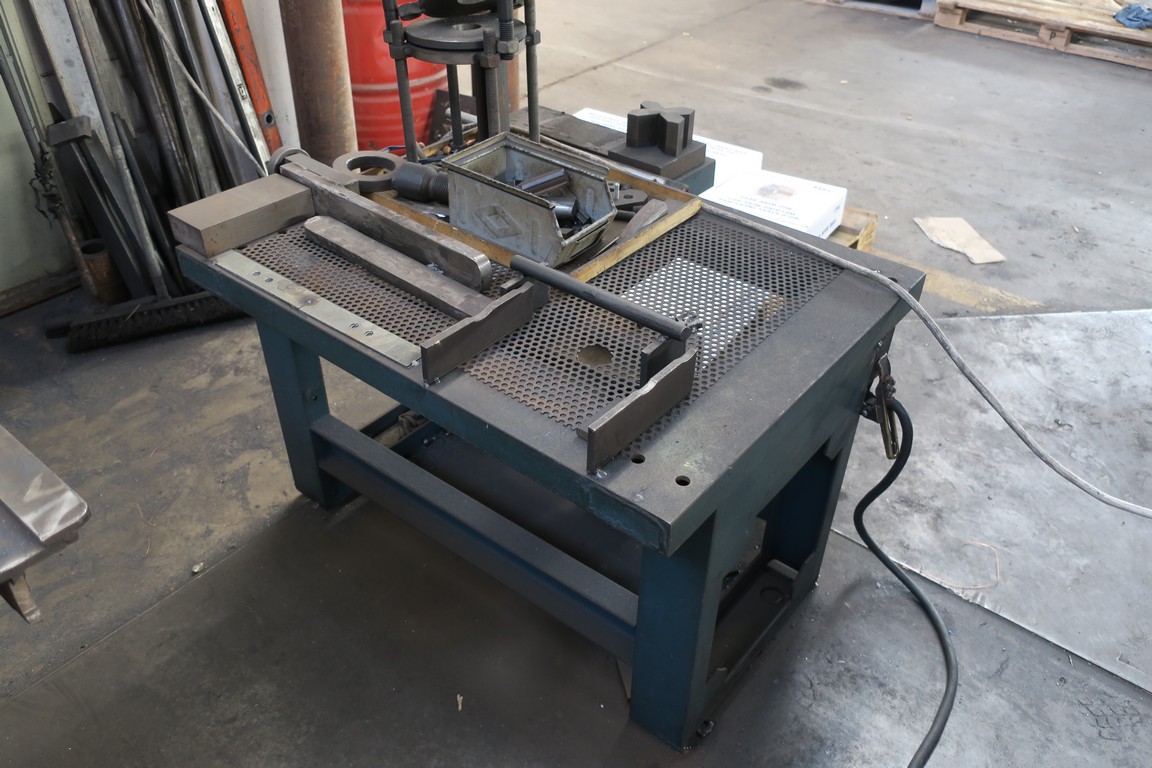 all’interno di questo articolo di attrezzatura usata per officina meccanica, abbiamo raccolto tutto il materiale vario e minuto come strumenti di misura e controllo qualità, morse, autocentranti, divisori, platò per tornio, maschi, punte, attrezzature di staffaggio varie, coni portautensili iso 50, utensili, banchi da lavoro, cassettiere, magneti per il sollevamento, moltiplicatore di giri iso 50, testine angolari iso 50, testina ad alesare iso 50, testina d’Andrea iso 50, tavole girevoli manuali, molatrici, presetting manuale per utensili, banco di lavoro con cave a T e tutto quel materiale solitamente in uso nelle officine meccaniche e nelle officine carpenterie