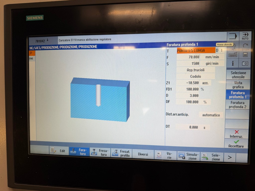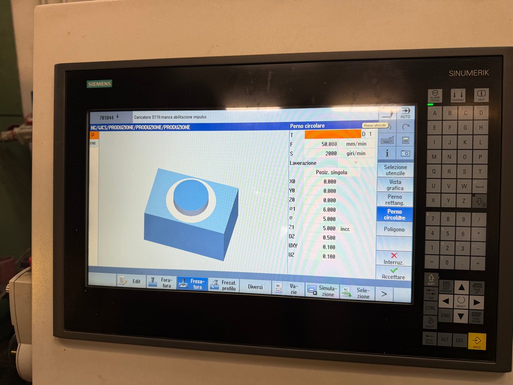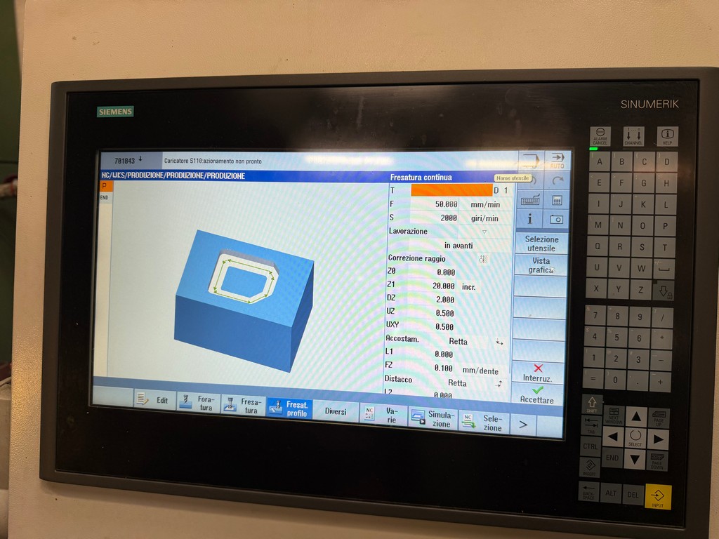 Corse assi x 1.520, y 520, z 420 mm, lavorazione 4+1 con cnc SIEMENS 840D con SHOPMILL, anno di costruzione 2018, a norme CE.