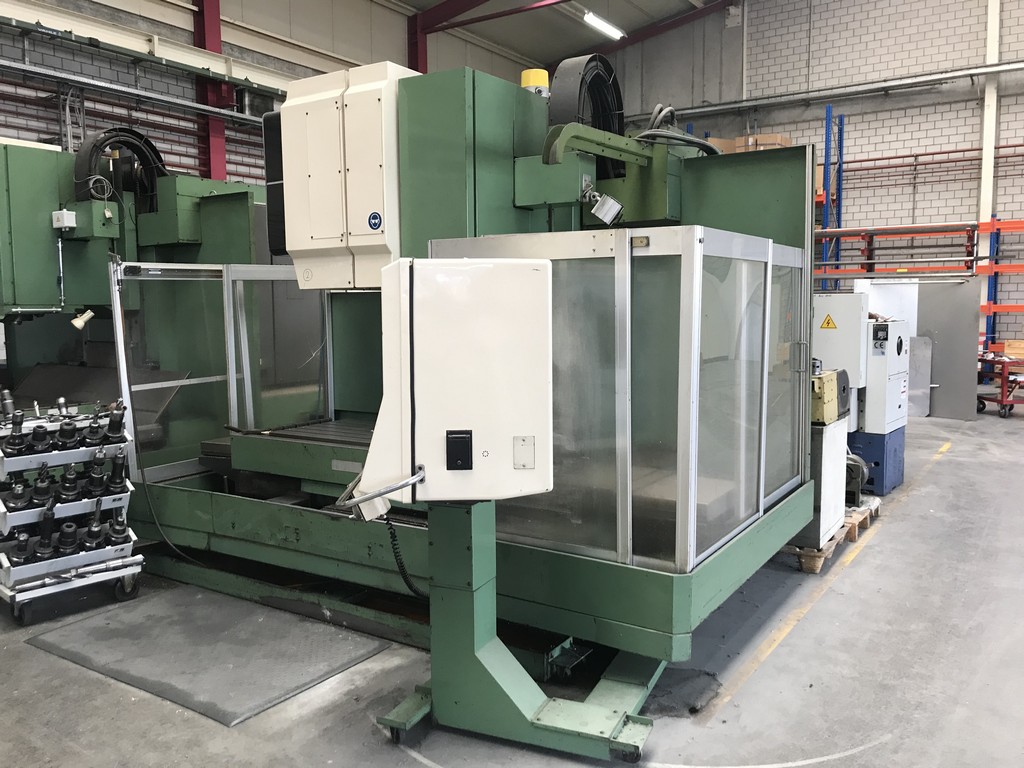 Il centro di lavoro verticale 4 assi MITSUI SEIKI VS5A usato è un robusto centro verticale a controllo numerico di medie dimensioni con struttura in ghisa su guide piane; corse X 1080, Y 650, Z 610 mm, con cnc FANUC 11, mandrino BT50 a 4.000 giri con cambio gamma, cambio utensili random bidirezionale a braccio di scambio da 32 posizioni.