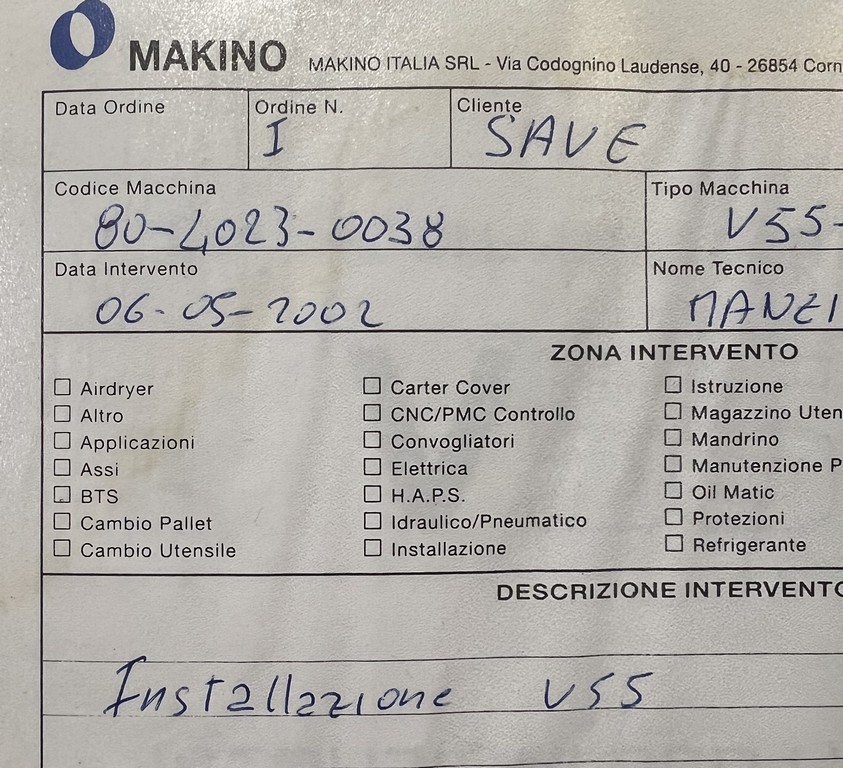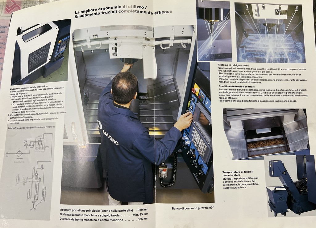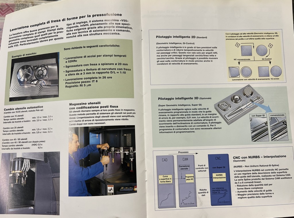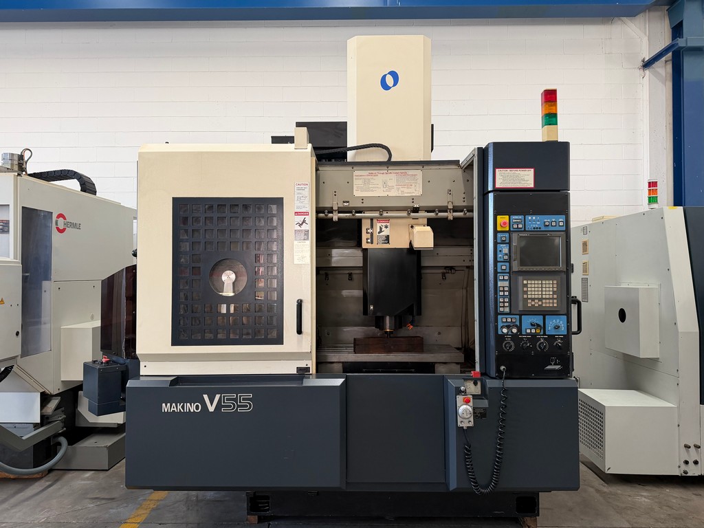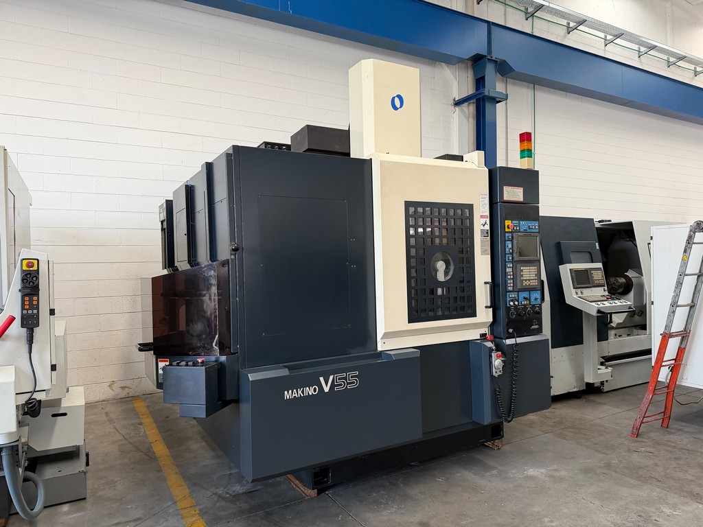 Il centro di lavoro verticale ad alta velocità MAKINO V55 usato è una macchina a controllo numerico particolarmente indicata per le lavorazioni generiche di particolari di dimensioni medio come ad esempio nel settore di attrezzeria, degli stampi, e della meccanica generale; soprattutto per la fresatura di materiale medio legati ed è particolarmente conosciuta nel settore per la sua qualità costruttiva (giapponese), precisione, affidabilità, ed elevate prestazioni di esecuzione grazie al cnc FANUC Professional 3 con pacchetto completo di altra velocità.