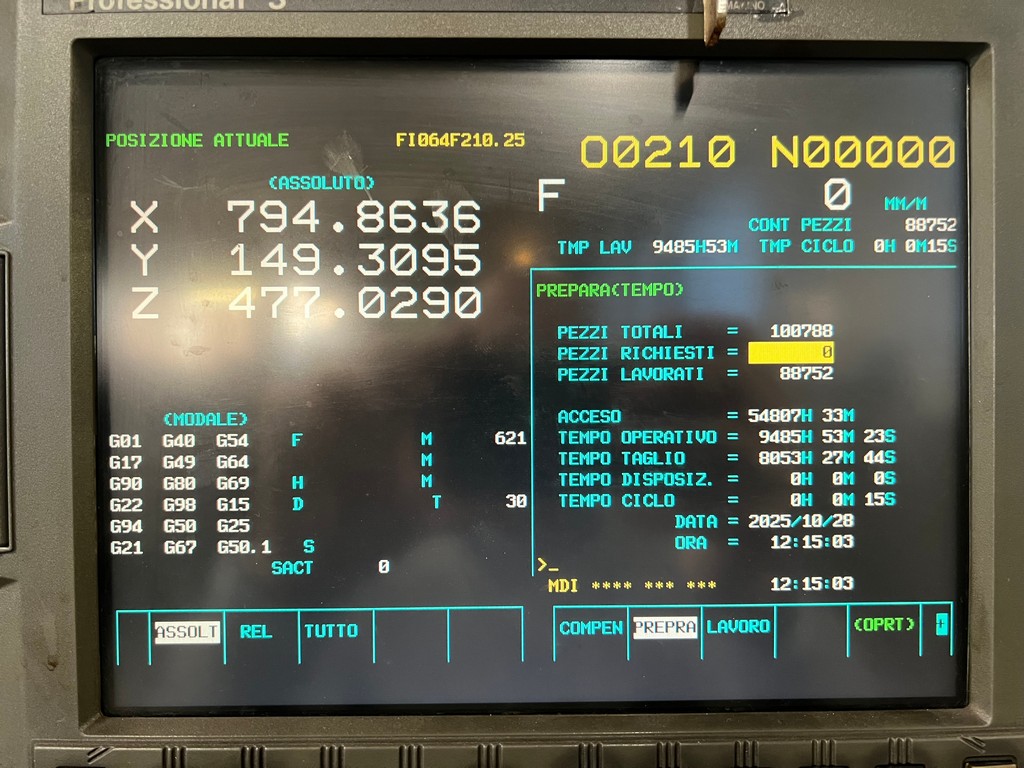 Anno di costruzione 2000, installazione 2002, a norme CE, mandrino con solo 8.000 ore di lavoro.