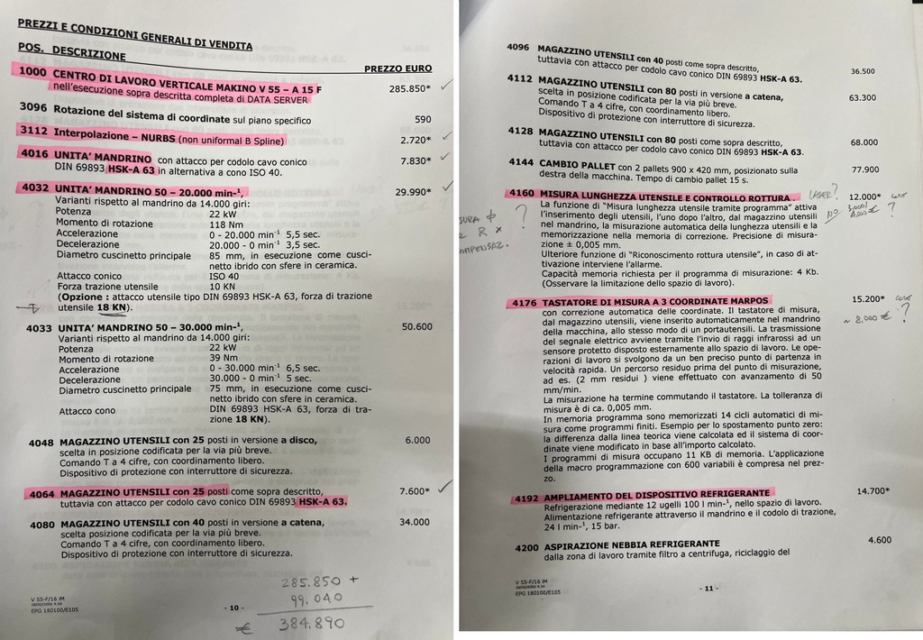 La macchina è inoltre dotata delle seguenti caratteristiche opzionali che ne aumentano notevolmente le sue già elevate doti di precisione e velocità di esecuzione pezzo: