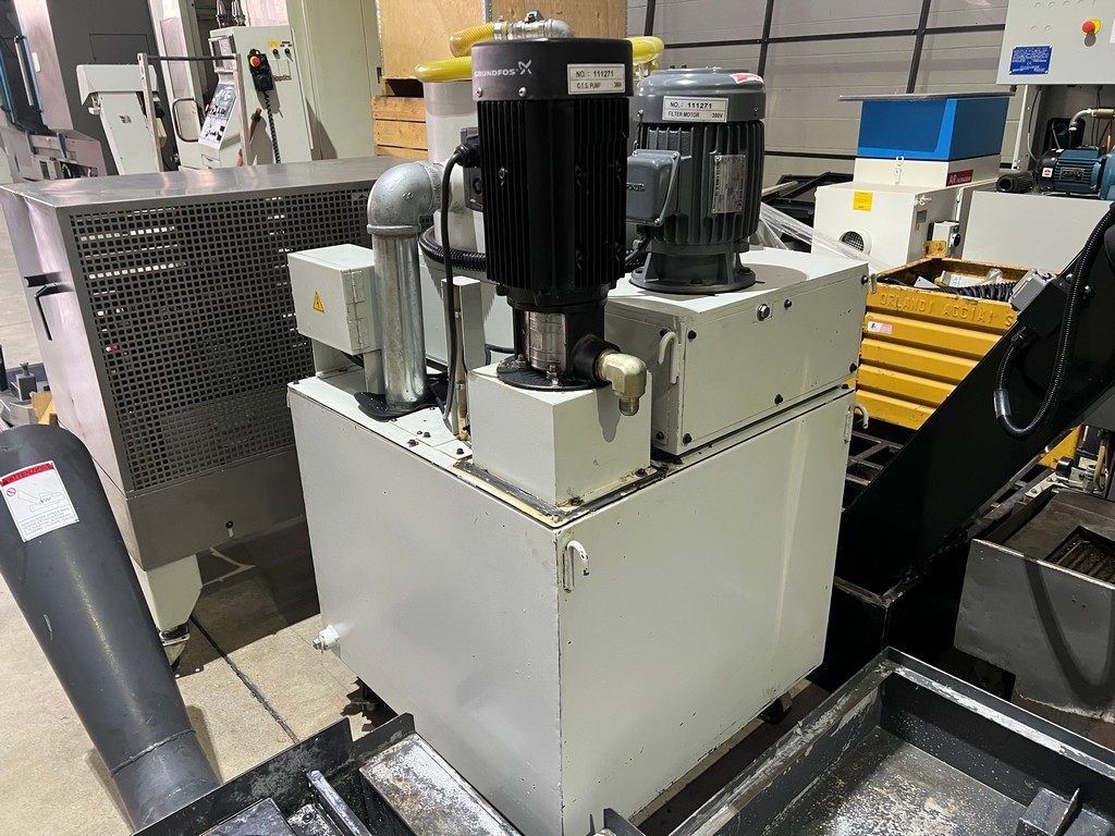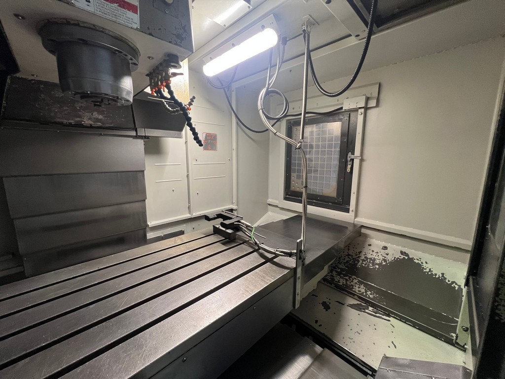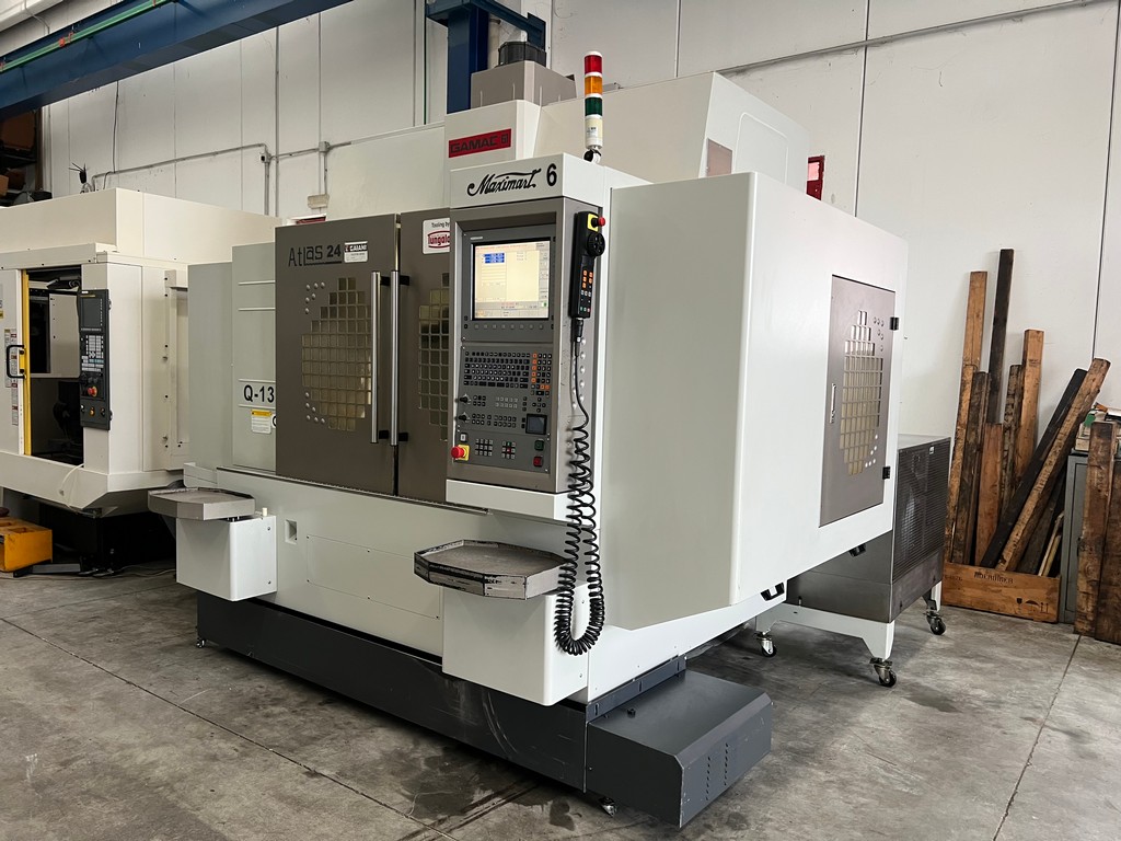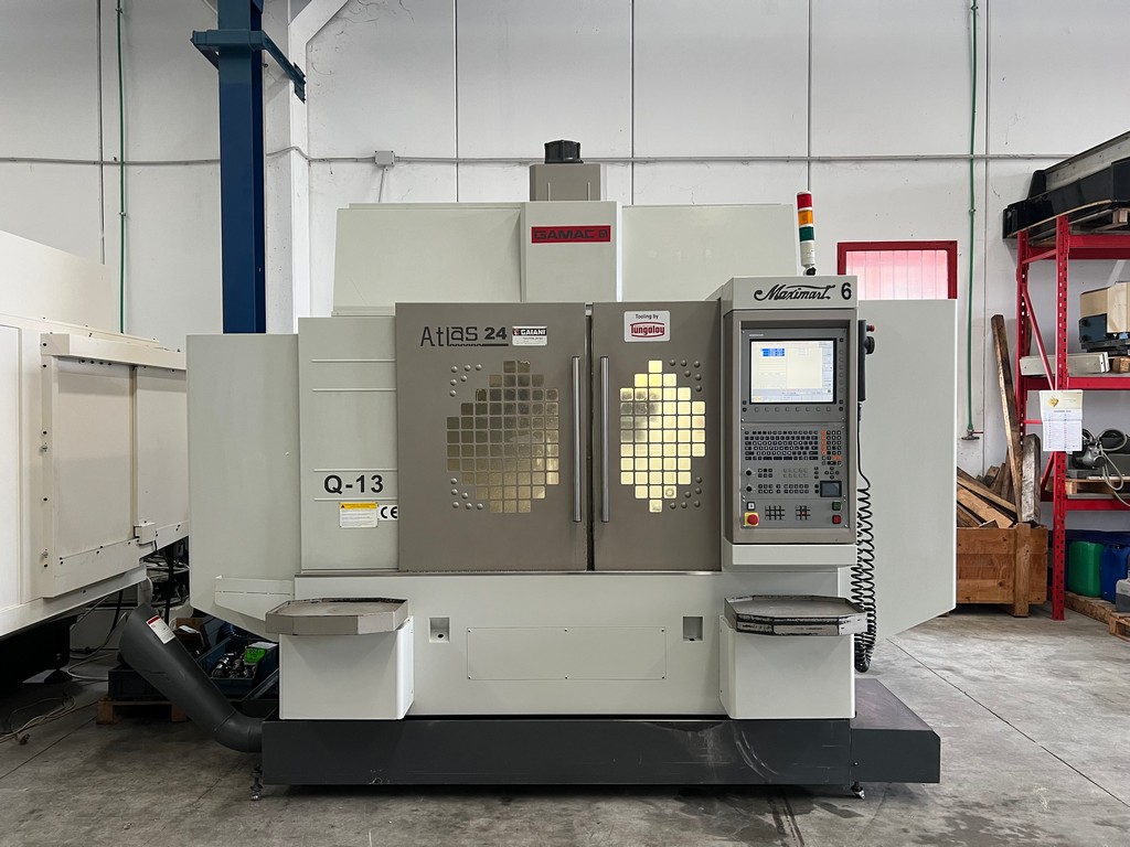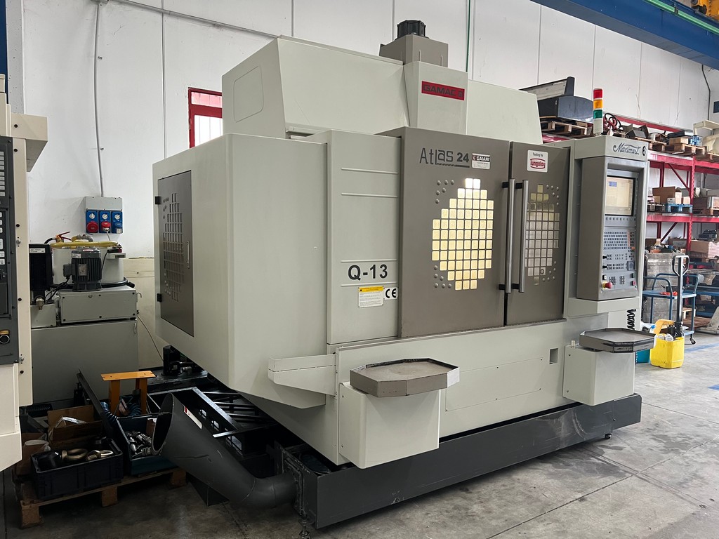 Il centro di lavoro verticale MAXIMART Q-13 usato è una macchina a controllo numerico di medie dimensioni con robusta struttura in ghisa e guide piane, peso 8.000Kg; corse X 1300, Y 630, Z 610 mm, dimensioni tavola 1400×610, anno di costruzione 2011, con HEIDENHAIN i TNC 530 con relativo volantino remotato, mandrino BT40 a 12.000 raffreddato da apposito frigorifero, refrigerazione ad alta pressione attraverso il mandrino, presetting laser BLUM, cambio utensili RANDOM a braccio di scambio da 24 posizioni ed evacuatore trucioli a coclea.