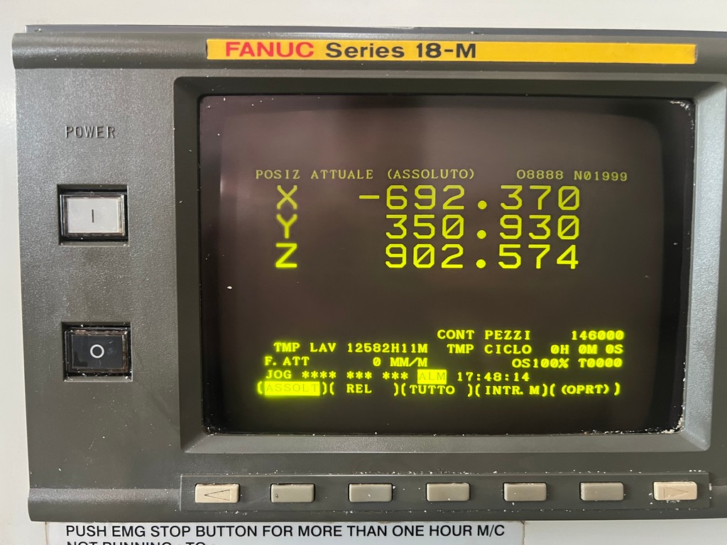 Anno di costruzione Dicembre 2002 (installazione 2003), con cnc FANUC 18-M con seriale RS 232.