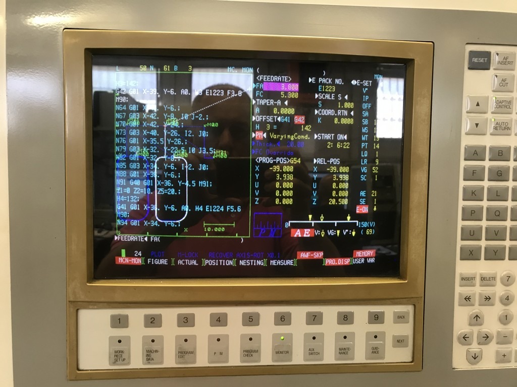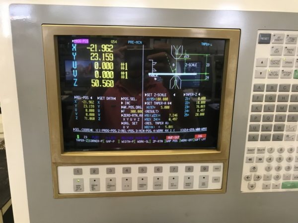 L’ elettroerosione a filo MITSUBISHI FX20 usata è una erosione a 5 assi a controllo numerico di medie dimensioni a banco fisso; corse X 500, Y 350, Z 300mm, dimensioni tavola 780x 630mm portata 800kg, dimensioni pezzo 1.050 x 800 x 295 mm, completa di infilaggio automatico del filo, frigorifero, lavorazione ad immersione e sportello apertura vasca a scomparsa; anno di costruzione 1997, a norme CE.