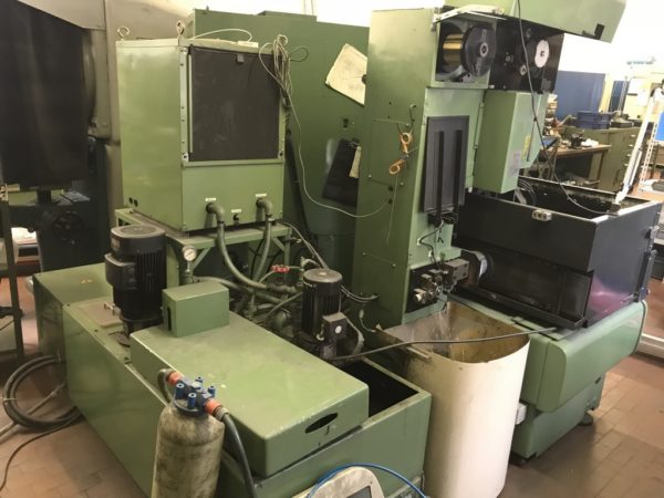 L’ elettroerosione a filo SODICK A320D usata è una erosione a 4 assi a controllo numerico di piccole dimensioni; corse X 320, Y 205, Z 175mm, dimensioni tavola 540 x 360mm, completa di infilaggfrigorifero, lavorazione ad immersione e sportello apertura vasca a scomparsa; anno di costruzione 1995.
