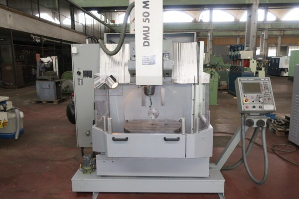 La fresatrice 5 assi cn DECKEL DMU 50M usata è una macchina a controllo numerico particolarmente indicata per le lavorazioni generiche di particolari di medie/piccole dimensioni come ad esempio nel settore di attrezzeria, degli stampi, dei particolari per motociclette; sopratutto per la fresatura di leghe leggere ed è particolarmente conosciuta nel settore per la sua qualità costruttiva, precisioni e versatilità grazie alla possibilità di essere usata anche in manuale grazie alla presenza degli appositi volantini, sia per i 2 assi rotativi (meccanici) che per i 3 lineari (elettronici).