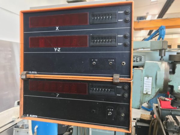 La Fresatrice universale visualizzata TIGER FU 90 usata, è una fresatrice manuale di medie dimensioni con mandrino ISO 40 1550 g/min., avente le seguenti caratteristiche principali: