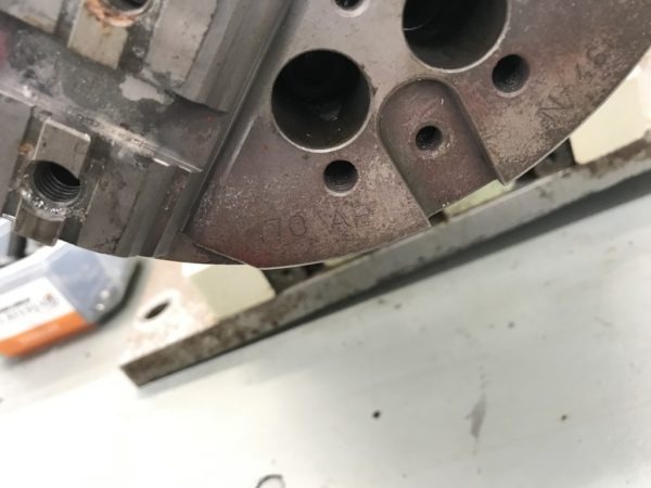 La linea mandrino con autocentrante pneumatico AUTOBLOCK 170 usata, è un componente strutturale testa (in ghisa) prelevato da un tornio cnc.