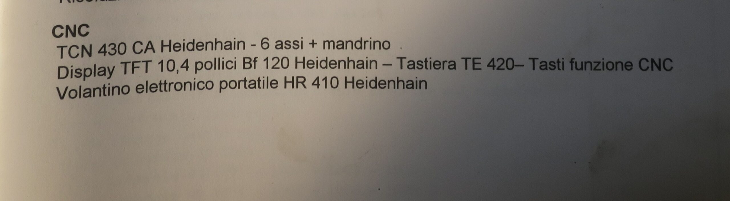 - unità centrale controllo numerico Heidenhain TNC 430 CA, 6 assi + mandrino