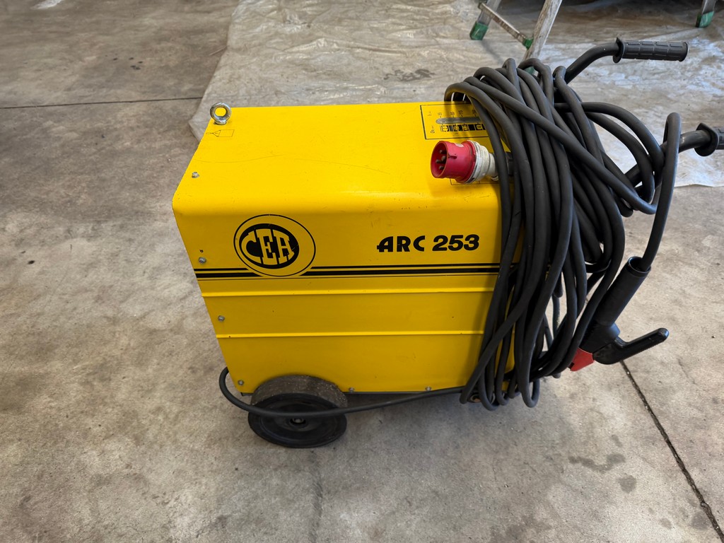 La saldatrice a elettrodi trifase CC carrellata CEA ARC 253 usata è una saldatrice ad arco (MMA) potenza max 250A con alimentazione 380V, a norme CE.