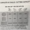 tondo mm 280, rettangolo 350×230, inclinazione -60° + 45°, motore 1.5 Kw, peso 1.100 kg.