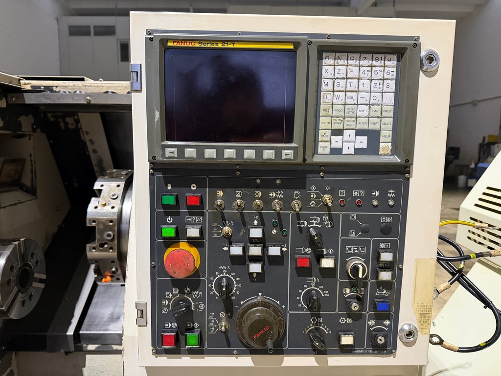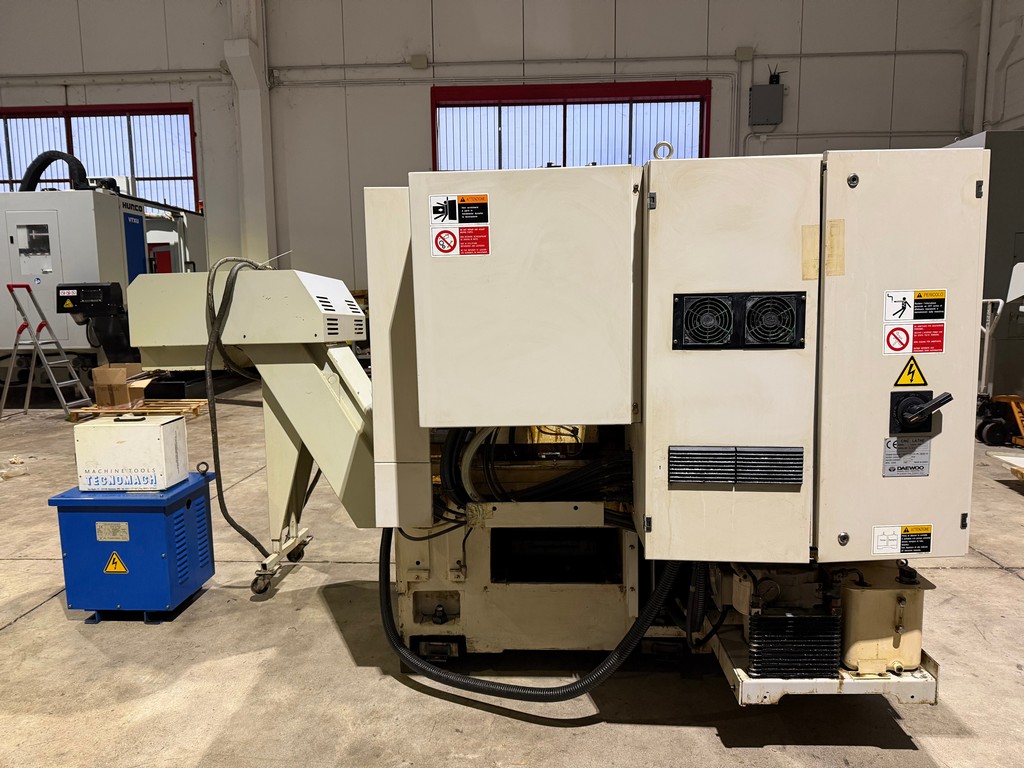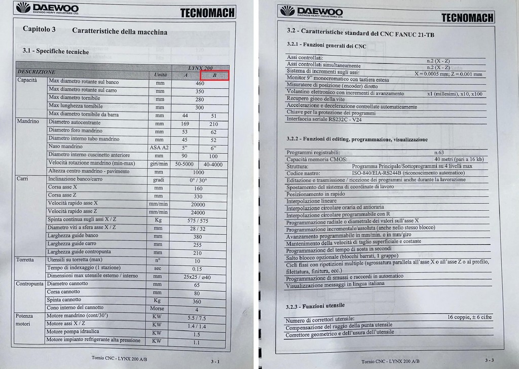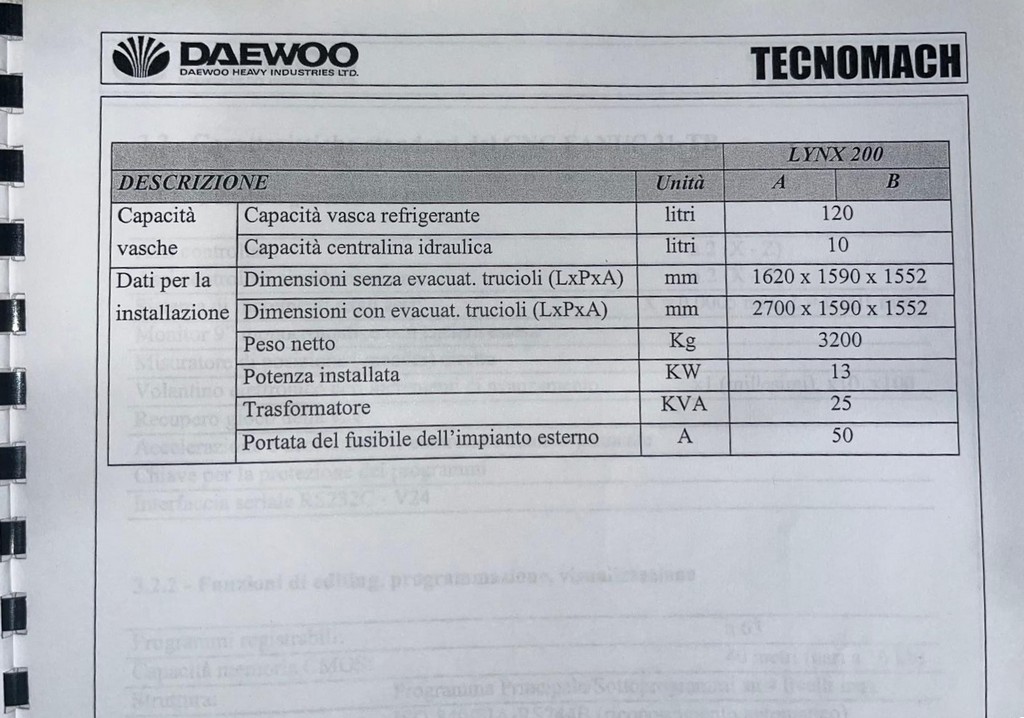 Il tornio cnc 2 assi DAEWOO Lynx 200B usato è un robusto e veloce tornio a controllo numerico a banco inclinato e guide piane 2 assi di piccole dimensioni, ed è dotato di cnc FANUC 21-T (con monitor LCD), anno di costruzione 1998, a norme “CE”.