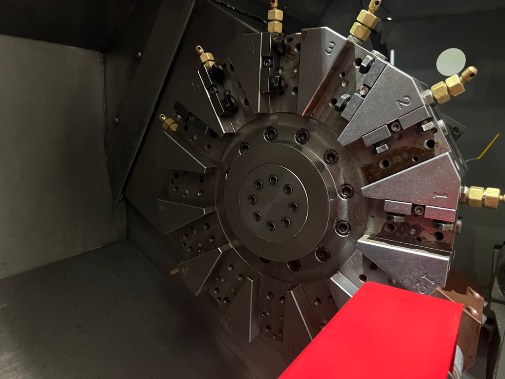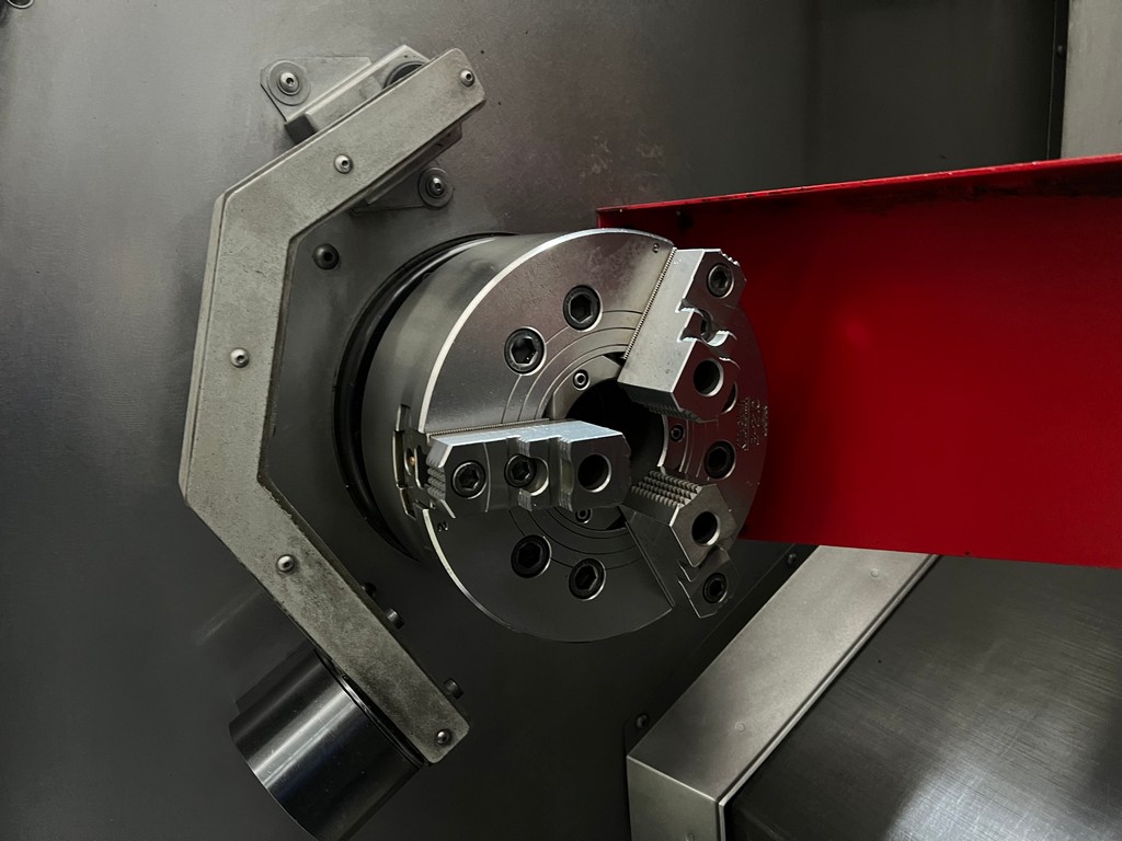 Completano la configurazione, il presetting utensile, l’evacuatore trucioli, il corpo contropunta programmabile, l’autocentrante idraulico a 3 griffe 250m BB, ed portautensili fissi;
