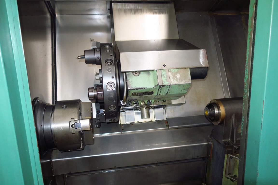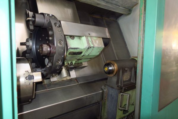 Taglia mandrino ASA 6″ monta un con autocentrante 210mm ed una torretta automatica a disco VDI 30 da 12 posizioni, completa la dotazione, la contropunta idraulica, l’evacuatore di trucioli a tappeto e una serie di portautensili, utensili e morsetti per autocentrante.