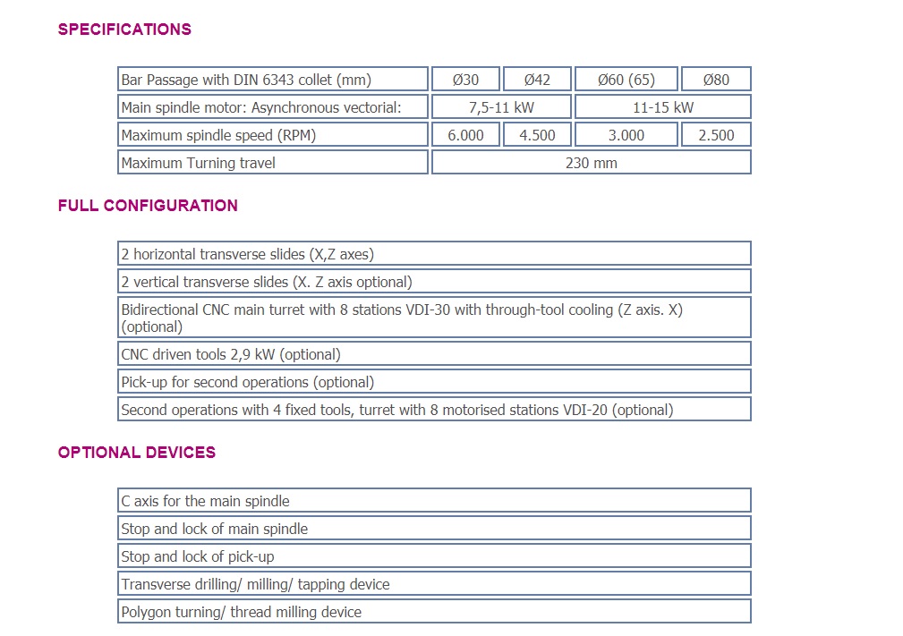 è un tornio automatico a cnc da alta produzione passaggio barra 42mm, dotato di slitte 8 assi e caricatore automatico di barre IEMCA BOSS 542.