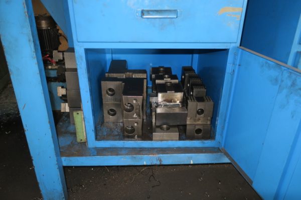 è dotato di una piattaforma autocentrante idraulica a 2+2 griffe da 1450 mm di diametro , torretta automatica 4 posizioni, ed evacuatore trucioli.